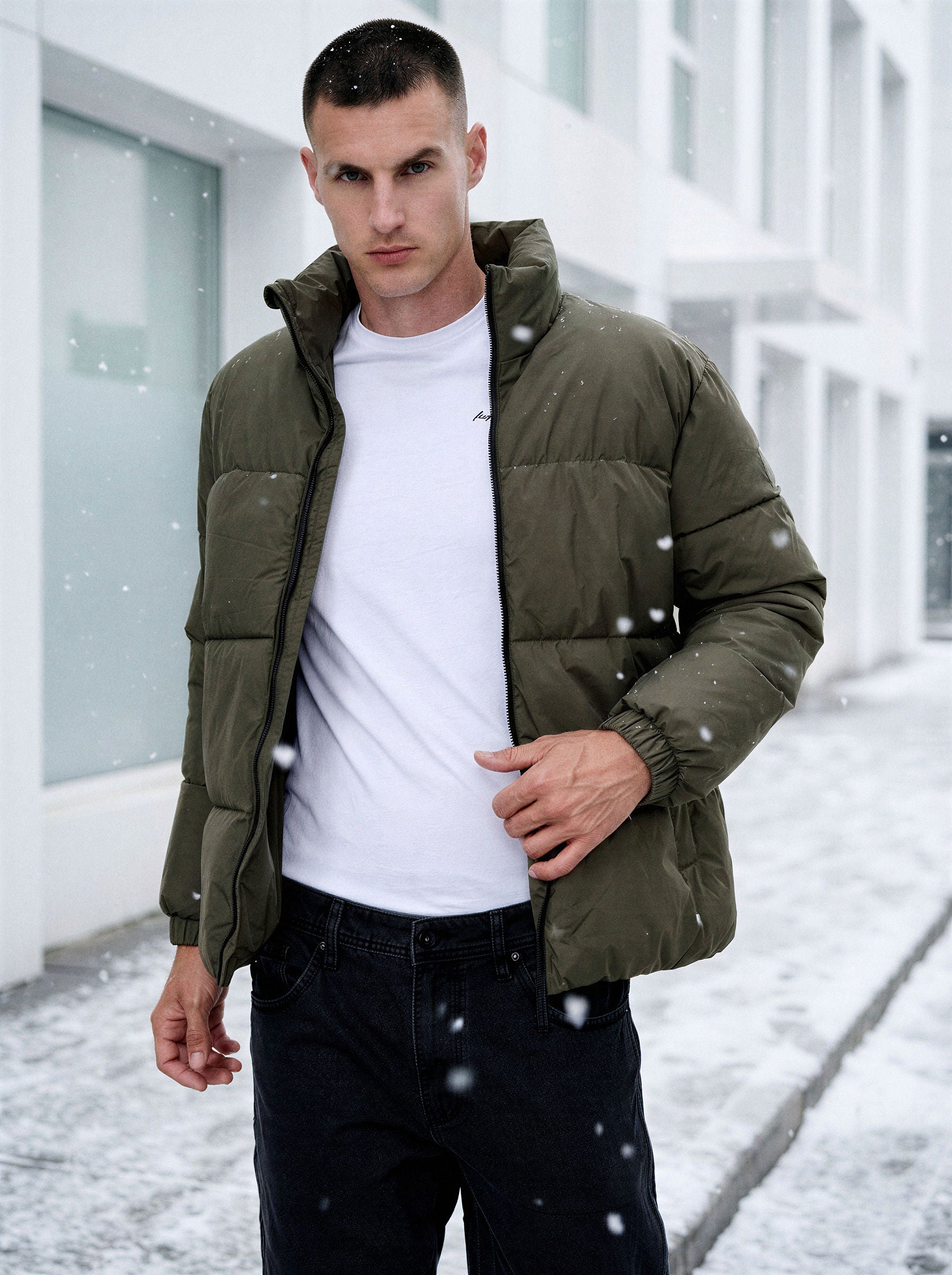 Chaqueta de niño en felpa de algodón y poliéster, , acolchada y con capucha desmontable.