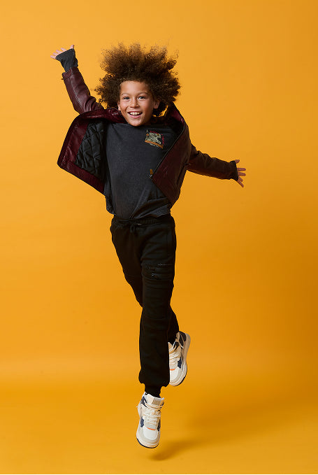 Chaqueta cazadora efecto piel estilo motorista efecto envejecido niño. Confeccionada 100% poliéster cierre cremallera.
